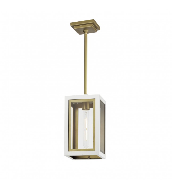 Two-tone frames of Black or White with internal Gold frames provides a neoclassical approach to the squared coach lantern. The sconces jut out from the wall on well-defined trusses that add a contemporary element. Delivering a classic design that suits most exteriors, this collection adds interest in the interior contrasting frame of Gold that secures clear glass panes to diffuse the lamp within.