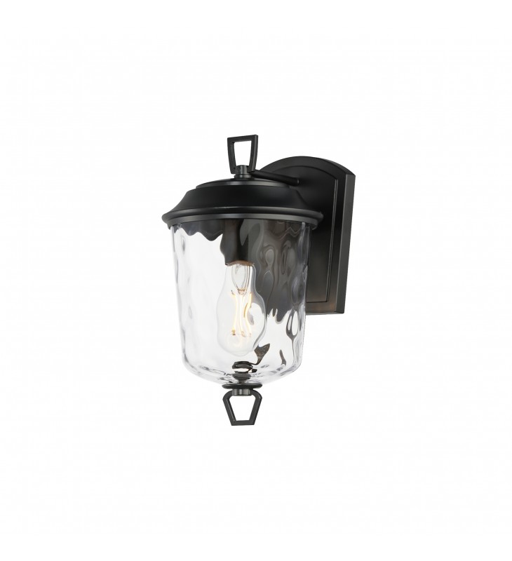 The Prescott collection of outdoor lanterns reimagines a classic design with timeless elegance. Crafted with a durable die-cast aluminum frame and finished in a sleek Matte Black, these lanterns exude a refined, understated charm. The water glass shade creates a beautiful lighting effect as it casts dazzling patterns on its surrounding surfaces. Thoughtfully updated with simple stirrup hook details, the collection effortlessly blends tradition with modern sophistication.