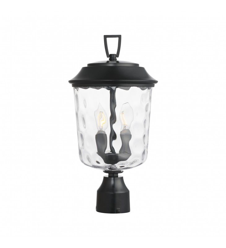 The Prescott collection of outdoor lanterns reimagines a classic design with timeless elegance. Crafted with a durable die-cast aluminum frame and finished in a sleek Matte Black, these lanterns exude a refined, understated charm. The water glass shade creates a beautiful lighting effect as it casts dazzling patterns on its surrounding surfaces. Thoughtfully updated with simple stirrup hook details, the collection effortlessly blends tradition with modern sophistication.