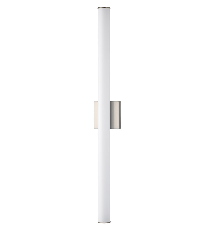 Tubular shaped White acrylic diffusers mount to frames of Polished Chrome, Satin Nickel, or Black. Powered by 3000K LED these fixtures work well in a variety of contract applications.