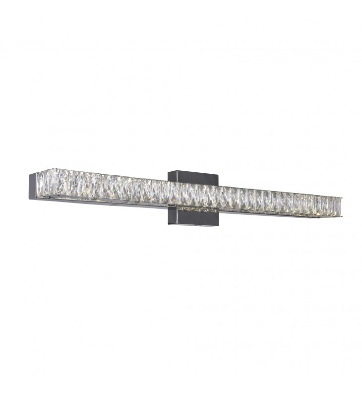 Add a sophisticated touch to your bathroom, or even to a dimly lit long hallway with the Milan 32 inch LED Wall Sconce. It features a slender row of crystals diffusing light from the integrated LED chips. Paired with chrome-finished hardware, this linear wall light delivers not just a gleaming light but also a high-end style to wherever it is placed.