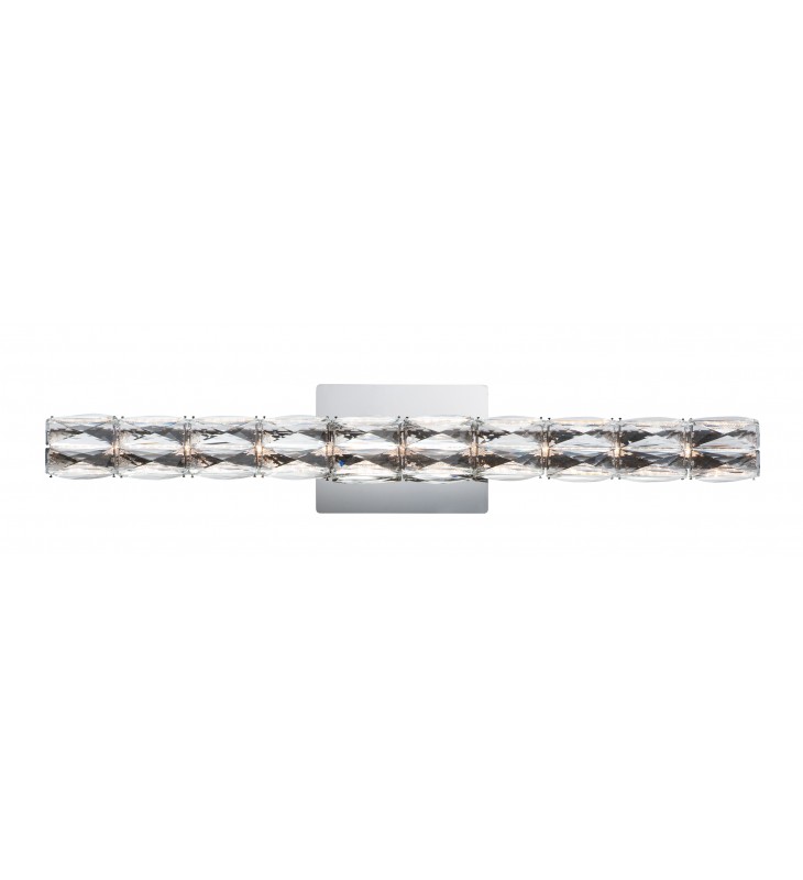Rectangular Beveled Crystals are banded together to form soft square cylinders which are illuminated by LED that creates a brilliant lighting effect. Some items include metal chassis of Black which frame the crystal for a beautiful silhouette.
