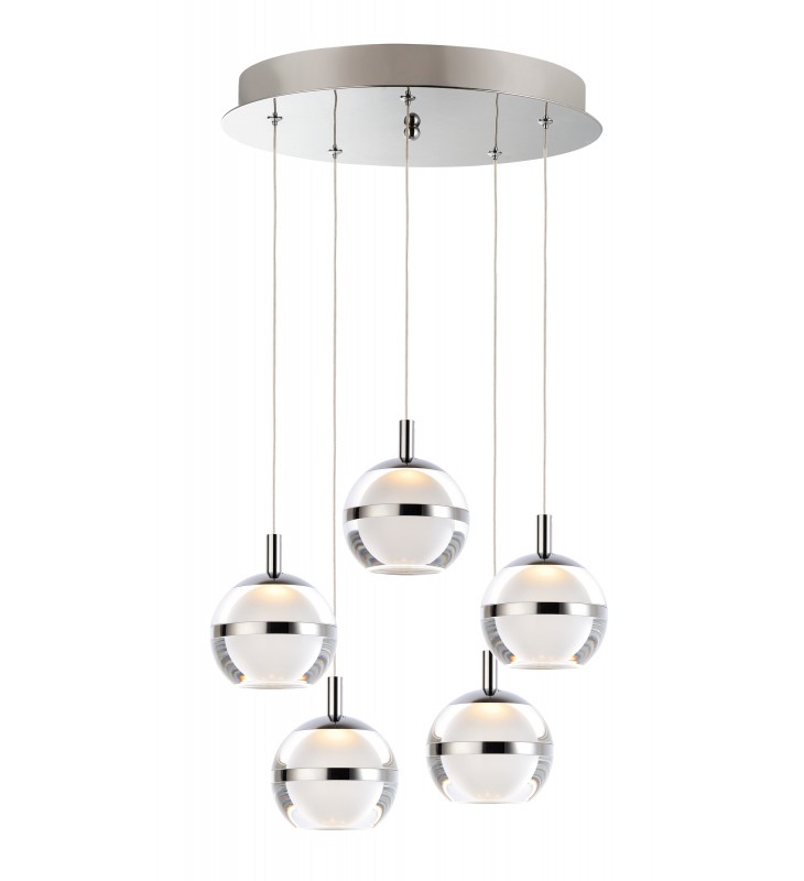 Orbs of crystal Clear acrylic are trimmed with a metal band and frosted inside for excellent light diffusion. The bottom is dimpled for a unique optical effect.