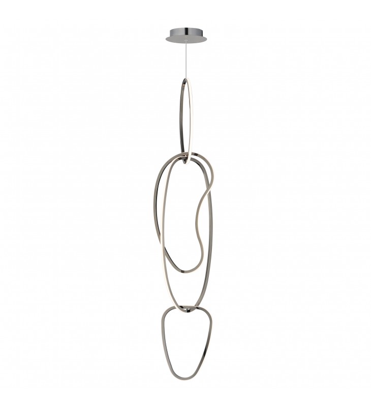 Abstract shapes of stainless steel are finished in Brushed Champagne or Black Chrome and intersect to create an intriguing sculpture of light. Unity provides both art and illumination for those searching for a unique lighting piece.