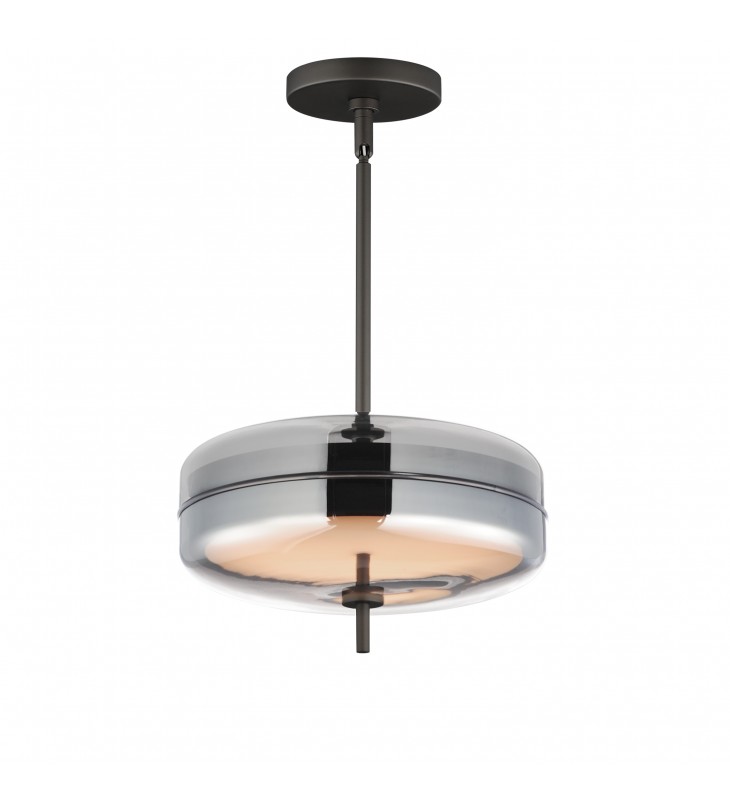 Shallow glass domes encase edge-lit LED panels, creating a captivating play of light that highlights the void within each fixture while delivering evenly distributed illumination both upwards and downwards where applicable. A meticulously crafted frame conceals the hardware, resulting in a sleek, modern LED composition. The collection is available in two sophisticated finishes - Clear Glass with a Gold-plated frame and Mirror Smoked Glass with a Gunmetal frame - and includes a 2-light LED pendant, a versatile flush mount that doubles as a wall-mountable fixture, and a portable lamp option.