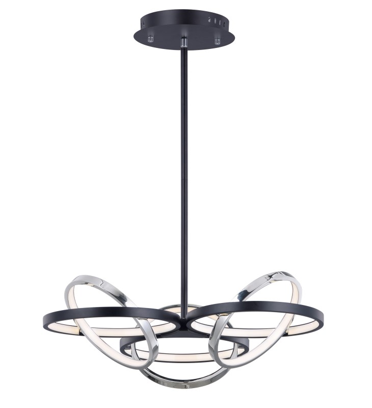 A very unique and interesting design that features concentric bands of Polished Chrome or Black that rotate on 3 axis points and adjusts in multiple directions similar to a gyro. The edge of each slender band encases a small LED strip covered by a frosted lens. This work of art is so much more than just a lighting fixture.