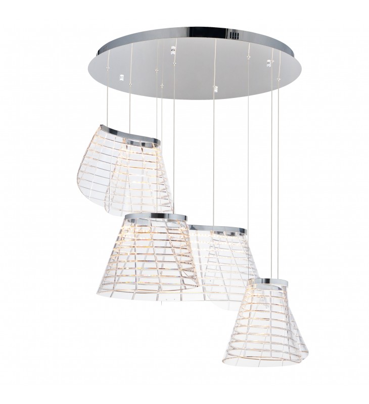 Inspired by patterned fabrics of the Scottish Highlands, the Tartan collection features a waving grid-like design etched deep into the transparent acrylic body. Hand-formed into a curling structure, the material gives the impression of billowing in the breeze. Color temperature selection at the canopy allows you to choose from Warm, Neutral, and Cool White colored LED lighting.