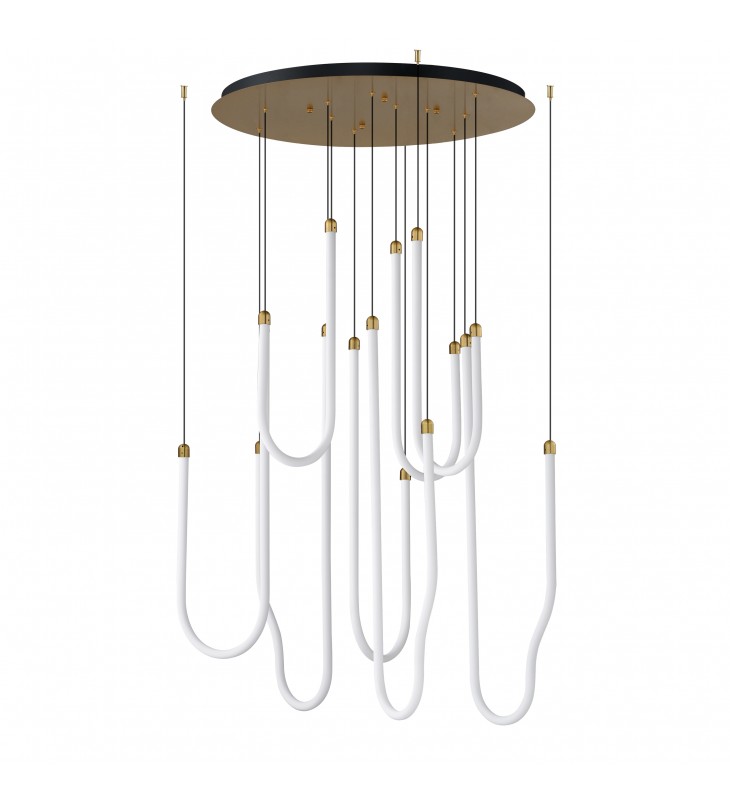 Sweeping matte white acrylic tubes encase an omnidirectional LED light source, arranged in abstract configurations inspired by solar flares. Minimal in composition yet dramatic in form, the Soleil collection offers a striking lighting solution. Available in a range of sizes, including fixed flush mount and field-adjustable pendant configurations, Soleil is offered in Polished Chrome, Matte Black, and Natural Aged Brass, making it a perfect complement to a variety of interior color schemes.