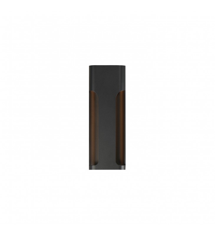 Large aluminum extrusions with indirect lighting highlights cut outs in this architectural outlook. Directed outwards toward the cutouts, these sconces are rated for outdoor applications. Select from Black or Architectural Bronze finishes and two sizes of sconce, one of which is scaled for larger fa?ade applications.