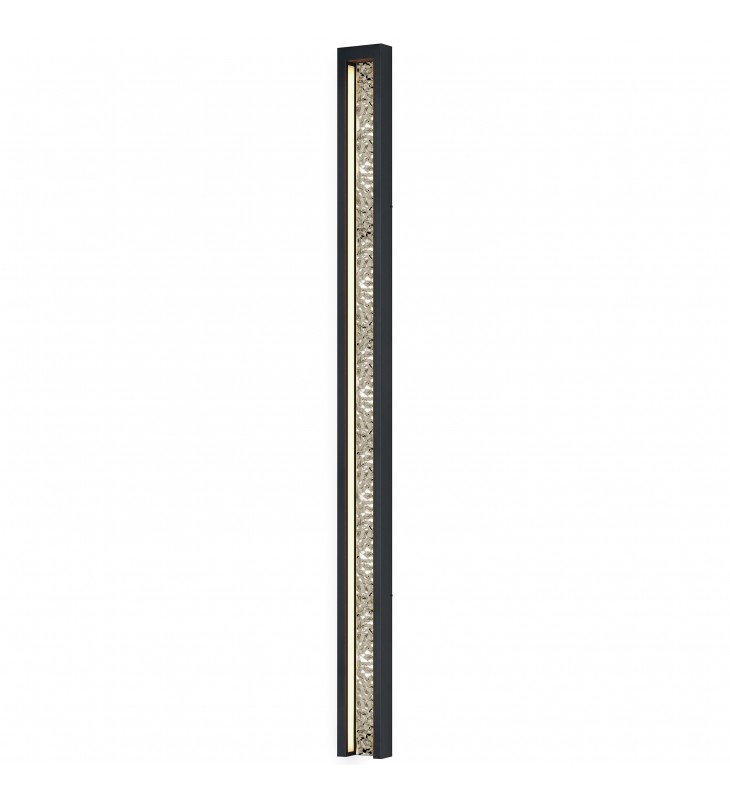 A water feature that seemingly flows down a narrow, elongated channel constructed of aluminum. Finished in Black the decorative plate is fabricated using 304 Grade Stainless Steel in a Polished Black finish making these impressive sconces suitable for outdoor applications.