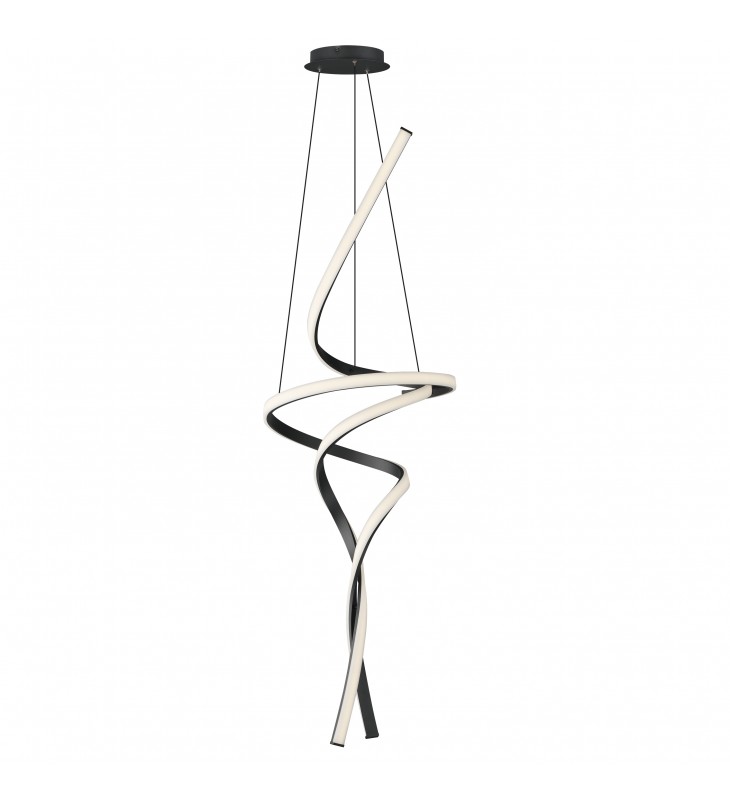 Spiraling sinews of LED tape light swirl in a snake like formation. Black aluminum channels are illuminated by strips of LED tape evenly diffused across a silicone lens. These sleek, modern designs, which come in two pendant sizes and a semi-flush mount, are sure to make a statement.