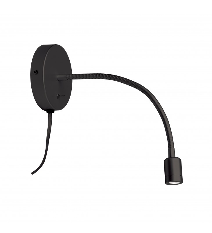 Dainolite Modern Wynne Wall in Painted Black Metal for the Wall with 1 bulb, LED socket base 3 Watts max Not Dimmable and UL Approved for Dry Location with a 3 Years Limited warranty. Great for Bedroom, Office, Specialty rooms and Commercial use. Features include , Lamp Head Can be adjust to Desired Position, 9ft Cord provides ample reach Optional Hardwire Installation