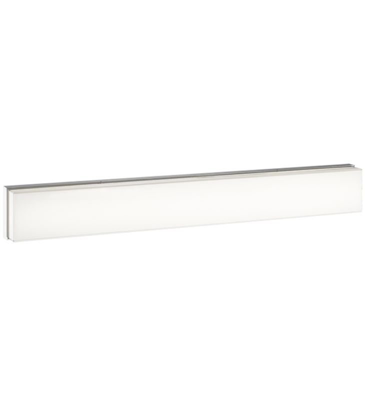 Sleek square and rectangular shape is the signature of this product.The clean lines represent simplicity at its best. The base comes in Chrome or Oxidized Black paired with a painted white glass shade. Available in both a LED wall sconce and flush mount.