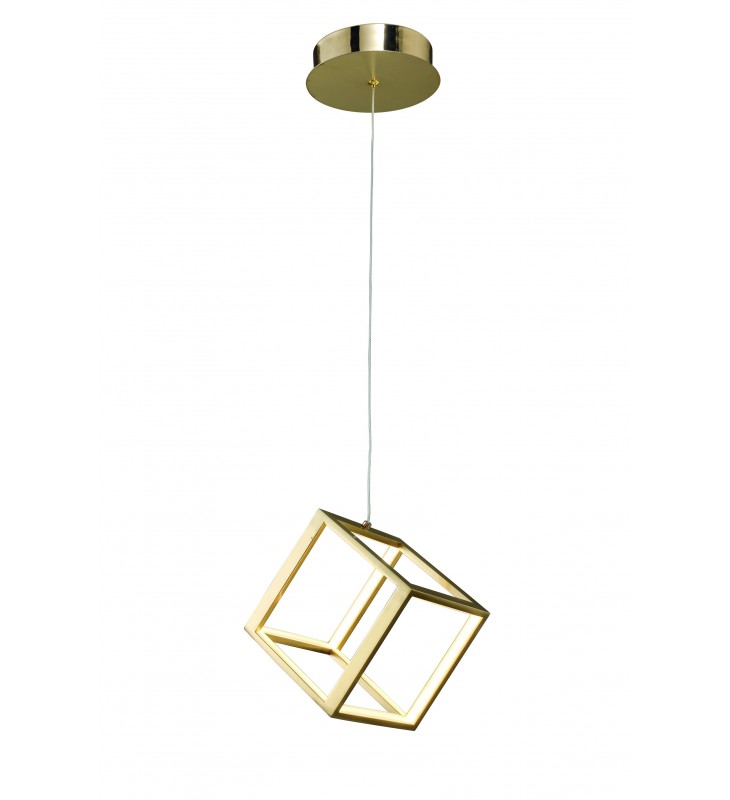 This exquisite LED single pendant lighting is in a gold finish. The frame is made out of aluminum in a cube shape, and it comes with acrylic diffusers in white color. The adjustable cord link makes this fixture suitable for most ceiling heights.