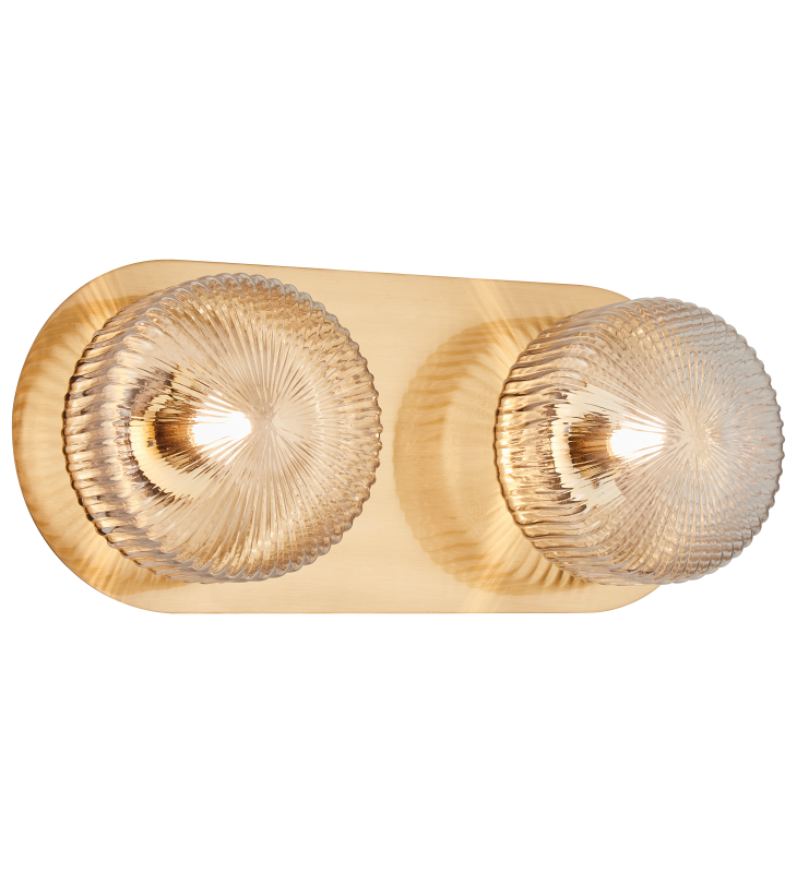 Knobbel Knob shaped glass is ribbed and meets in the centre to elevate the retro elegance. Available in Aged Gold Brass or Matte Black canopy with either Clear or Opal glass in one, two, or three light options. The reflection on the canopy provides extra pizzaz for the Knobbel collection. *LIGHTBULBS NOT INCLUDED