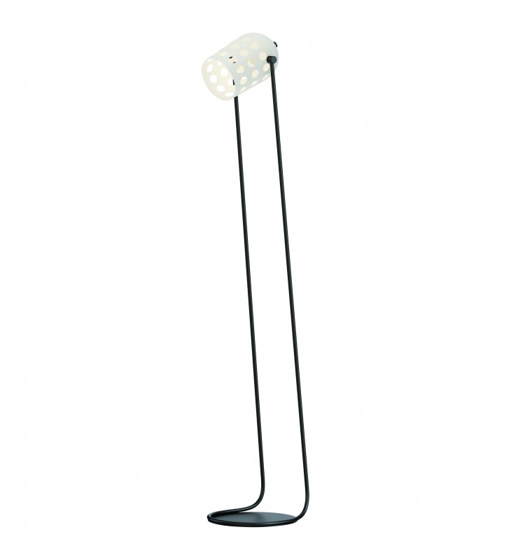 Retro configurations of Mid-Century Modern perforated metal designs inspire this collection of pendants, wall and ceiling mounts complete in a two tone powder coat finish. The spun metal shades are punched with large circular perforations that scatter a pattern of light when lit. Finished in a clean, two-tone Matte White and Black powder coat, these pieces add cheerful character to their space. The oversized shades on the wall sconce and portable lamps also feature a swivel joint that allow you to position the shade and direct the light with ease. A convenient switch on the back of the shade operates a 3-step dimmer to adjust the lamp\'s brightness at the touch of a button.