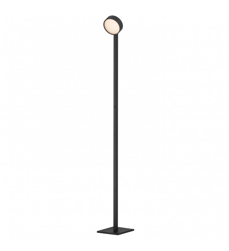 A modern matte black frame crafted with rectilinear tubing supports circular LED light modules. Designed to appear as if they are facing each other in an embrace, the modules create a harmonious and dynamic aesthetic. The two modules, positioned at opposite ends, cast evenly distributed light and seamlessly rotate to direct illumination precisely where it\'s needed. Two versatile surface-mount fixtures are suitable for wall or ceiling installation, as well as two portable lamp options. The portable designs feature a tabletop lamp and a larger-profile floor lamp, both equipped with an integrated touch switch for easy operation and dimming control.