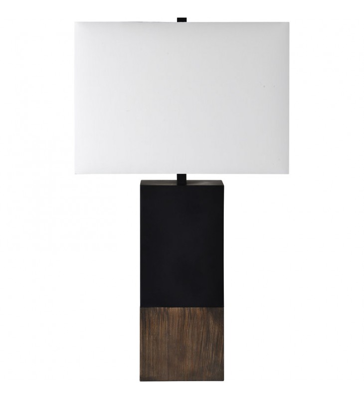 Table Lamp - Pine Wood - Natural Finish - Iron - Black - Powder Coated Finish - Off-White Cotton Shade - 3-Way Switch - Max. 100W - E26 Socket