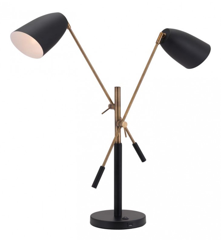 Tanner Table Lamp Matt Black & Brass (56078) - Zuo Modern
