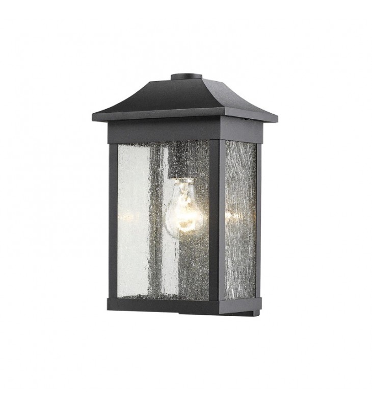 The \"Morgan\" collection of exterior lighting, design by S&C, has a water type glass on a clear precise frame. Shown in black finish and available in rust finish as well. \n\n\n \n \n