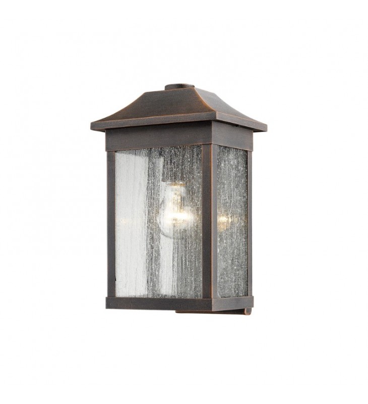 The \"Morgan\" collection of exterior lighting, design by S&C, has a water type glass on a clear precise frame. Shown in rust finish and available in black finish as well. \n\n\n \n \n
