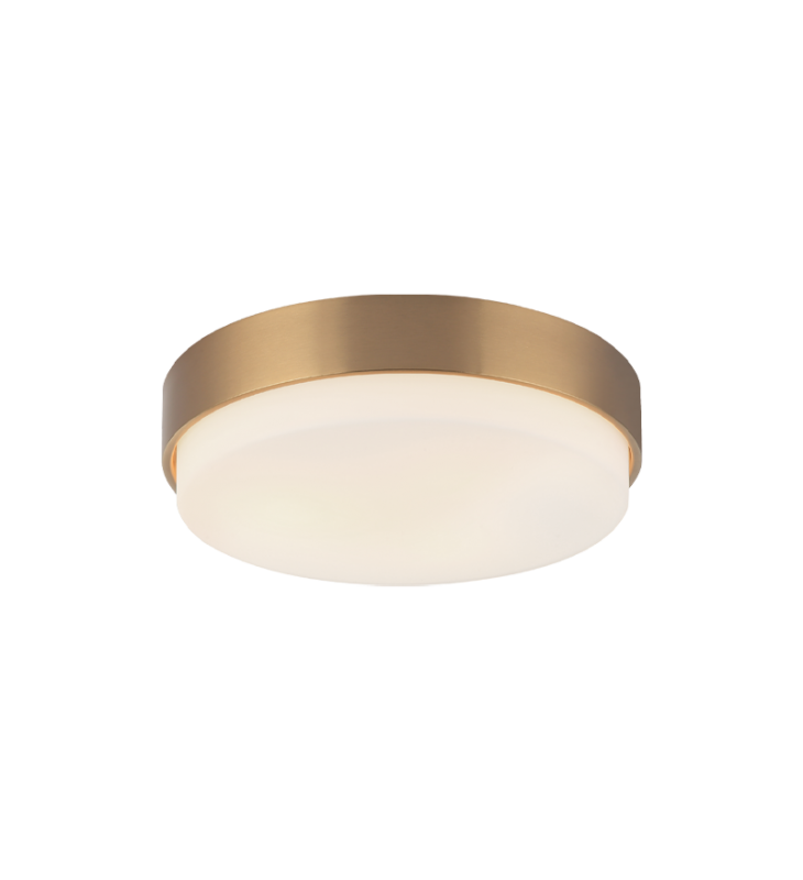 The white glass shade extending beyond the metal frame of the Quintz is a twist on a traditional ceiling mount. It comes in 3 finishes: Aged Gold Brass, Chrome and Matte Black and 2 sizes.