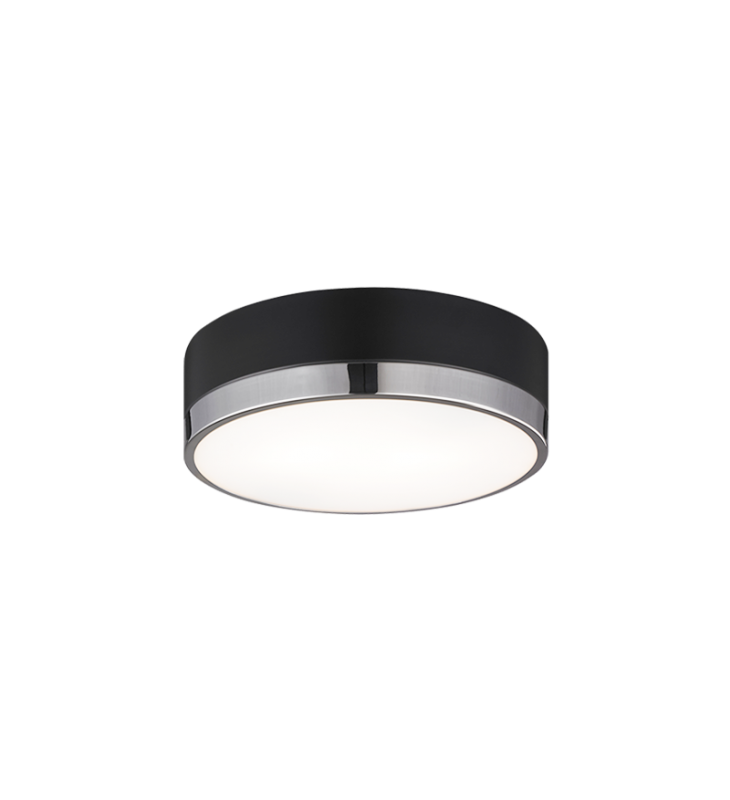Trydor is an ultra modern take on the traditional flush mount with a higher profile.This two-tone series features a thick Black or White band with a thin contrasting finish of either Chrome or Aged Gold Brass. A versatile fixture, suitable for any room.