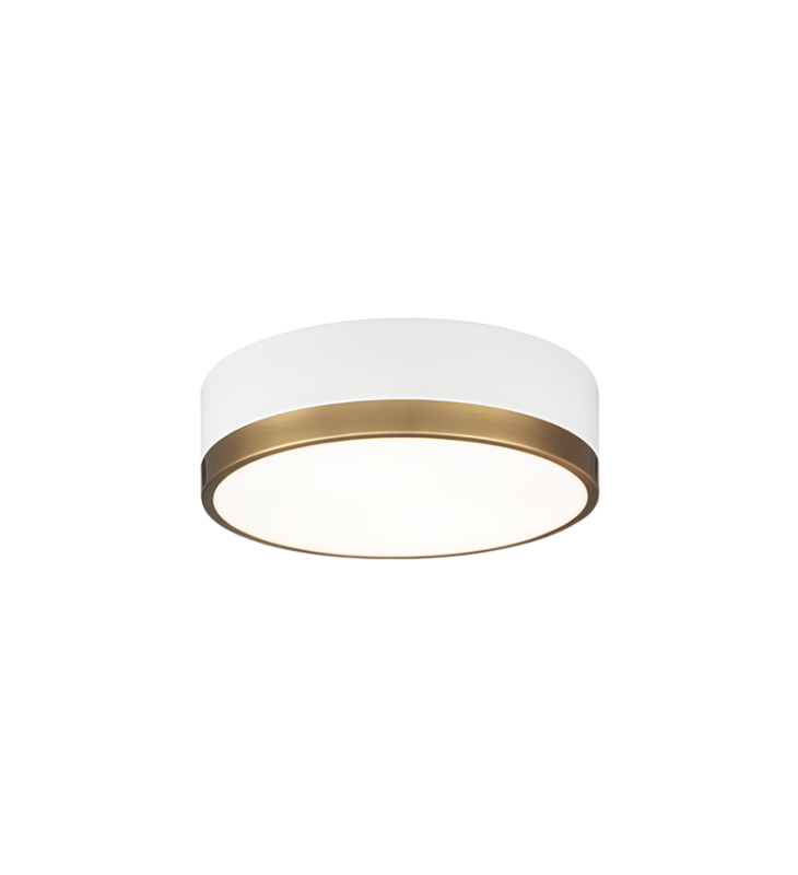 Trydor is an ultra modern take on the traditional flush mount with a higher profile.This two-tone series features a thick Black or White band with a thin contrasting finish of either Chrome or Aged Gold Brass. A versatile fixture, suitable for any room.
