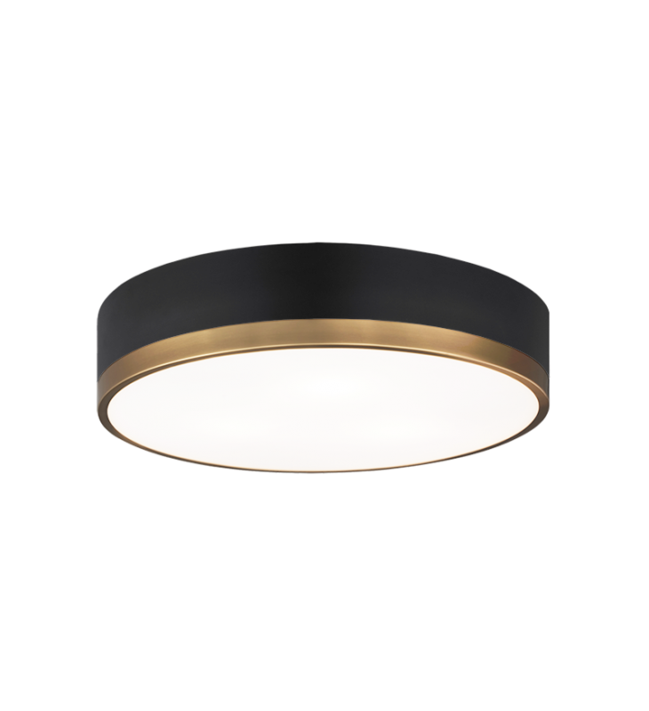Trydor is an ultra modern take on the traditional flush mount with a higher profile.This two-tone series features a thick Black or White band with a thin contrasting finish of either Chrome or Aged Gold Brass. A versatile fixture, suitable for any room.