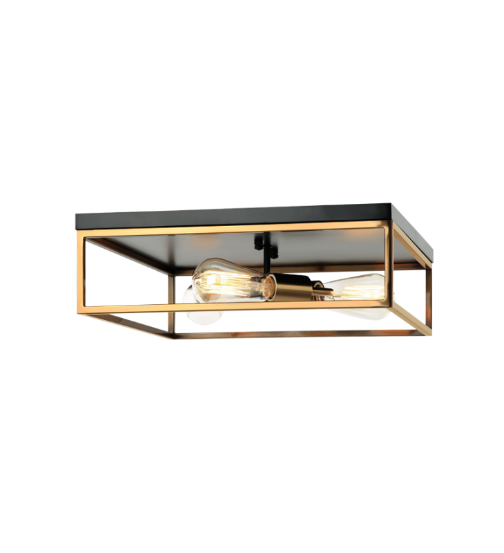 An eye-catching two-tone series with an Aged Gold Brass frame and bold Black top.The open concept maximizes the available light for a true statement piece. Clarke is available in 2 sizes in both a round and square shape.