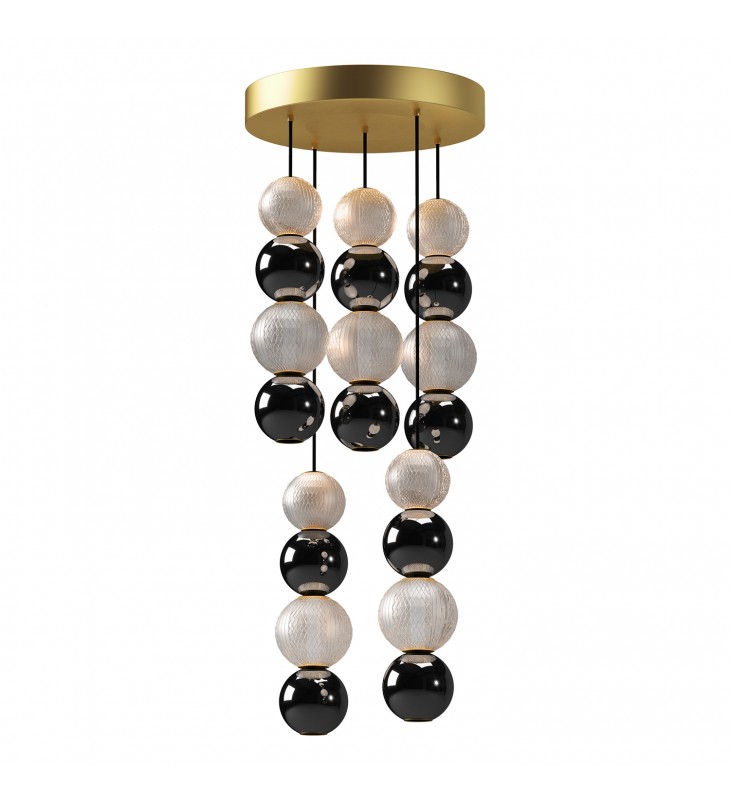 Like gorgeously beaded jewelry, the Onyx collection adds luxury and interest to any design. Meticulously cut spherical shades create glittering beams of illumination throughout the design. Available in Polished Nickel and Natural Brass accompaniments.