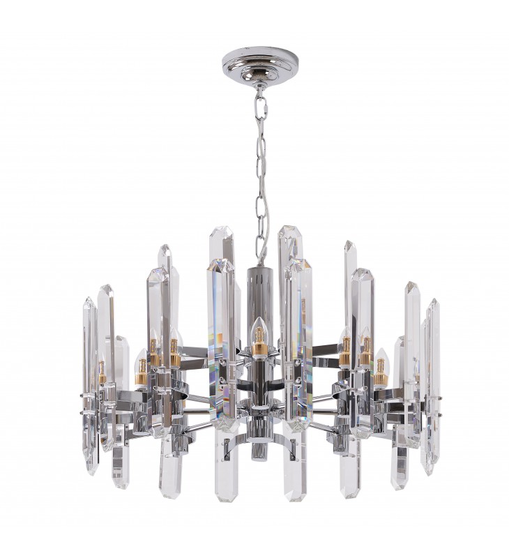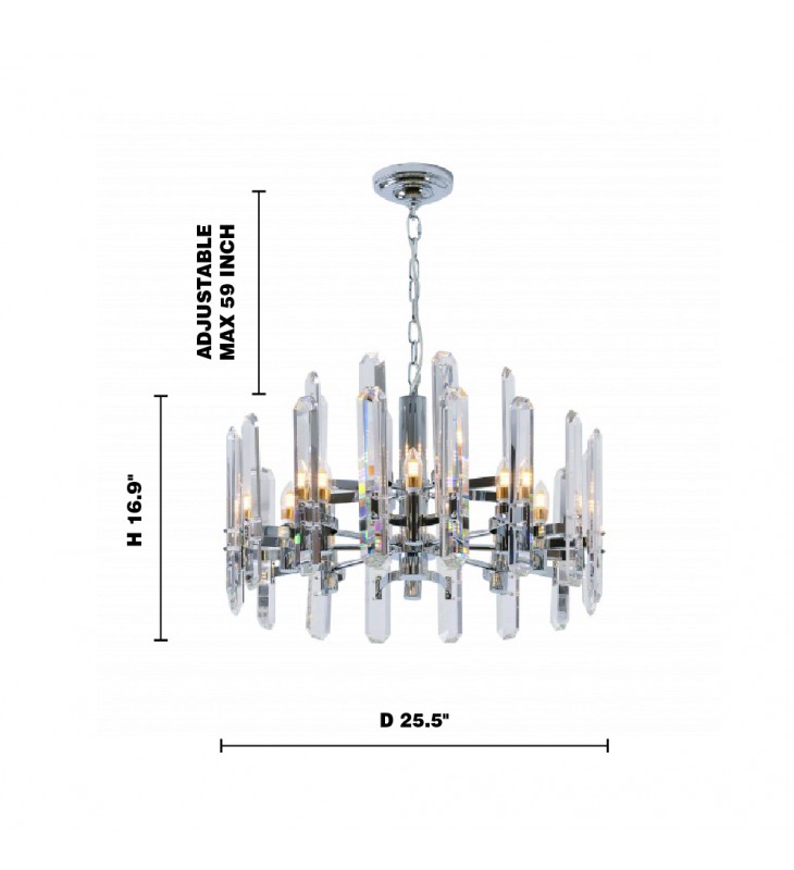 Chrome Frame Chandelier With Clear Crystal Plaques