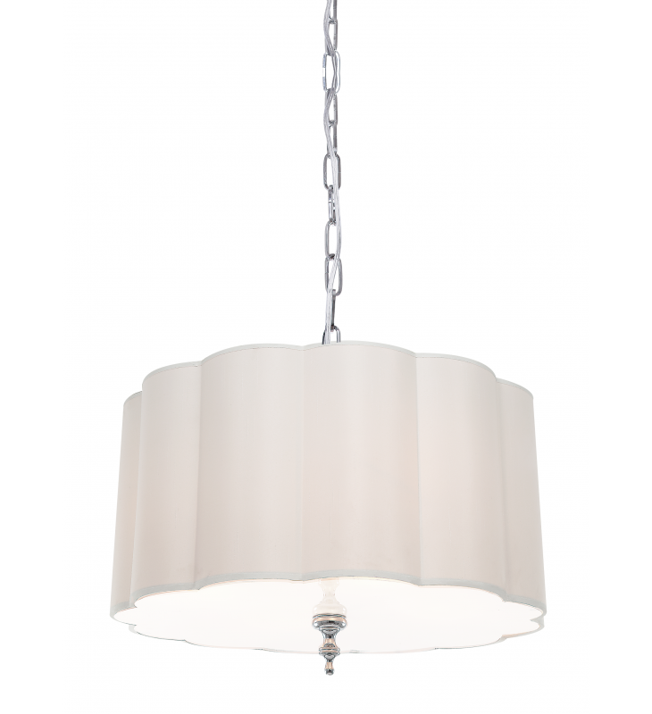 The celebration of elegance that consists of detailed finial and simple off-white linen shades. Deroga Affair radiates a timeless look for your favourite room. Available as a ceiling flush mount and 2 sizes of pendants all in a Chrome finish.