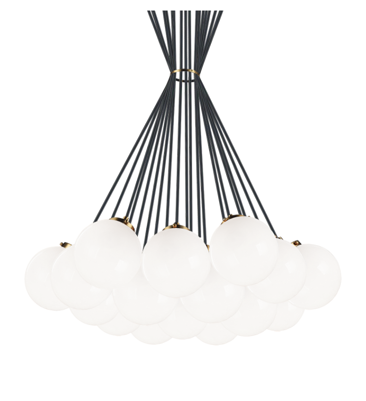 This series comes in several different models depending on the number of light bulbs.The light is designed with a candelabra based bulb covered in spherical glass with a choice of Aged Gold Brass or a Chrome finish. All sizes of this series are available with clear or opal glass. Both finishes are completed with a black fabric cord. You can hang these fixtures with different lengths of cord depending on the look you are going for.The ring that keeps the cords tight can also be removed if so desired. *LIGHTBULBS NOT INCLUDED