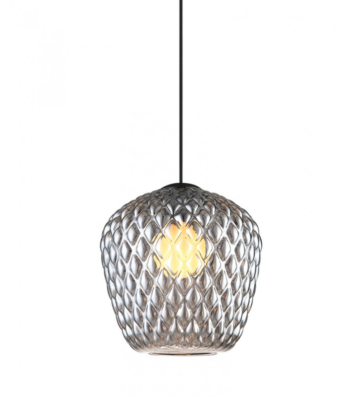 Vintage inspired diamond textured glass allows this otherwise simple pendant collection to be a design element in any room. The three classic shapes of this collection are offered in a Smoked or Clear glass. All of the pendants are finished with a Matte Black canopy and a black fabric wrapped cord. Use this singly or group multiples together to create a stunning statement. *LIGHTBULBS NOT INCLUDED