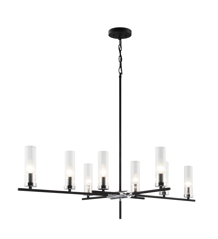 Simple yet elegant, this modern design includes a classic scalloped edge ribbed clear glass interior. The play of modern with classic design elements makes this piece timeless. A polished Chrome finish with contrasting Matte Black rod(s), Luminoso will add charm to any room. *LIGHTBULBS NOT INCLUDED