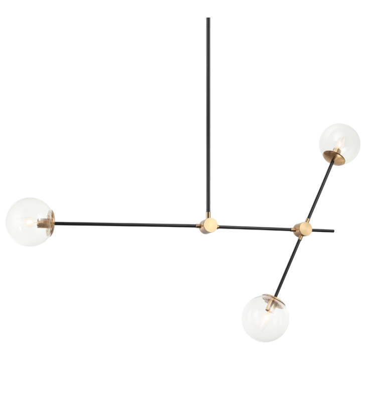 Cosmic is arranged with long, sleek, black slidable rods, paired with Aged Gold Brass finish details.This collection is available in 2 sizes in either Clear or Opal glass to provide a stunning yet minimalistic look.The creativity of this series adds a unique detail to any space.
