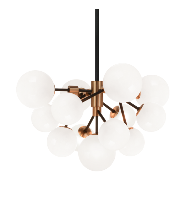 A retro inspired collection that will integrate seamlessly with many decors. Novu comes in Opal glass on sleek black rods offset with Aged Gold Brass accents. Available in a complete family including various sized ceiling fixtures, a wall sconce and a flush mount.