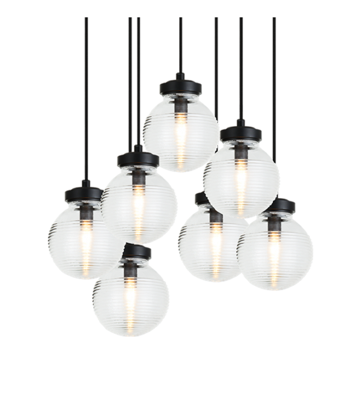 The Ridge collection is designed with ribbed glass globes that create a harmonious century-old feel. Gorgeous and stylish, comes in a single pendant and one light, two light, three light or four light wall sconce option. Matte Black or Chrome finishes.
