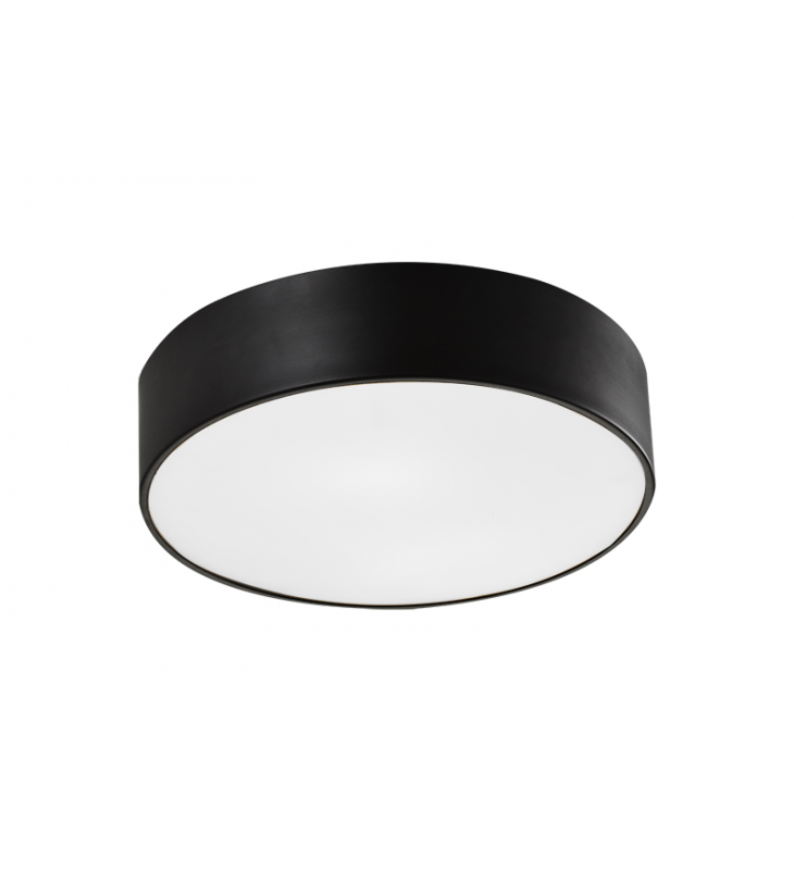 A classic round flush mount fixture offered in two sizes and two finishes. Straight sided round metal bands finished in chrome or bronze completed with a frosted glass lens.
