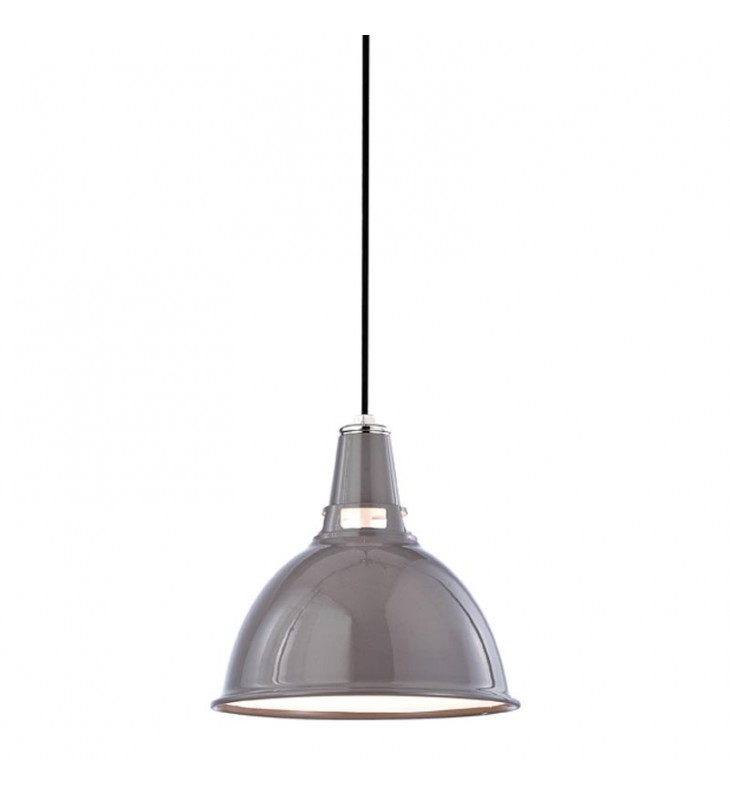Glossy enamel coats the industrial metal shade, giving Lydney an element of glamour. Adding an additional touch of sophistication, cloth-sheathed wiring runs from canopy to shade. As for the light itself, cutouts direct additional light toward the ceiling, while the interior is entirely finished in white, amplifying the light-source.