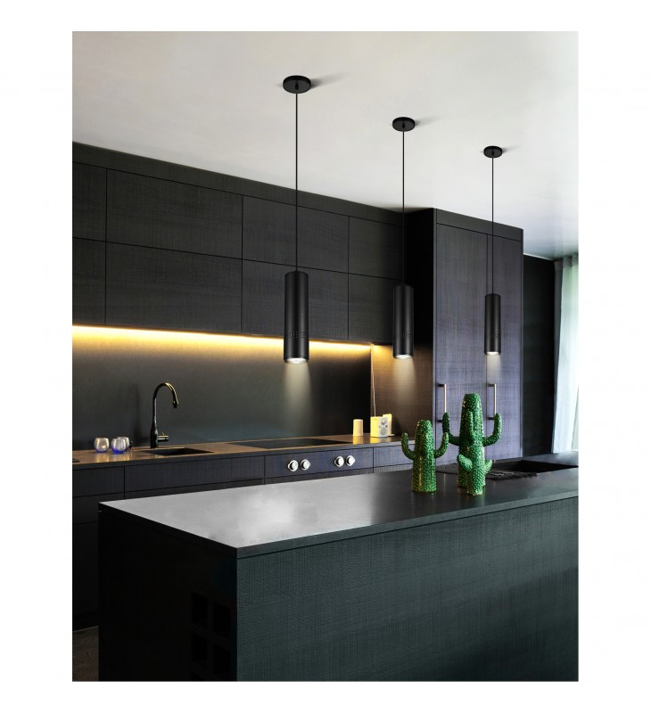 Don\'t underestimate the lack of decorative detail of the 11 inch Stowe LED Pendant. A minimalist\'s choice, this modern down mini pendant features a wooden cylindrical shade in black finish. What it lacks in ornamental detail, it makes up for in light diffusion and refinement. Create a chime-like series of this single Light pendant over a kitchen island or dining table and see it become a minimalist designs statement.