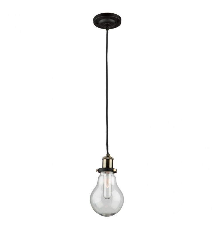 Retro in style, and elegant by design, the \"Edison\" collection features a bulb shaped clear glass held by socket covers that are matte black and vintage brass in color. To go with the flow and match the styling, the wires have black textile covers, complimented with a matte black canopy. Multiple sizes available.\n \n \n \n