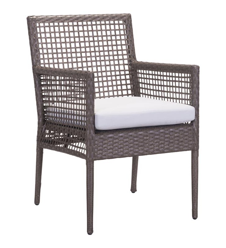 Modern cabana style design for the Coronado collection features a see through basket weave design made from synthetic woven resin over a galvanized aluminum frame for a distinctive design statement. Coronado Dining armchair cushions are plush while angled seat back adds extra comfort for all day enjoyment. Upholstered in industry leader Sunproof fabrics, which ensure avoid moisture buildup, water wicking and UV resistance for any outdoor use. Sold separately collection includes dining table & chair; armchair, sofa, end and coffee tables.