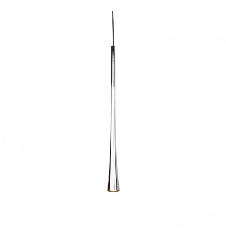 Slightly offset from the suspension cable the die-cast aluminum body repeats linear verticality with an elongated stem that flows into the conical shade. Concealing functionality in an elegant form the X lamp head integrates an LED spot assembly simultaneously serving as heatsink. The exaggerated tubular length provides aesthetic detail while acting as hang straight. Available in several curated finishes.