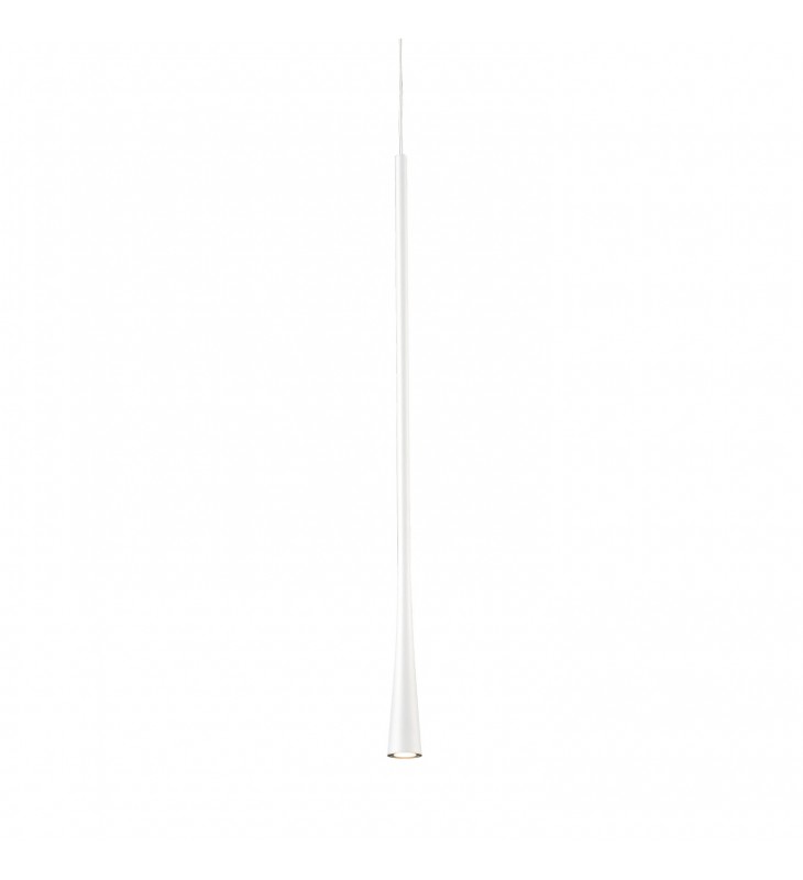 Slightly offset from the suspension cable the die-cast aluminum body repeats linear verticality with an elongated stem that flows into the conical shade. Concealing functionality in an elegant form the X lamp head integrates an LED spot assembly simultaneously serving as heatsink. The exaggerated tubular length provides aesthetic detail while acting as hang straight. Available in several curated finishes.