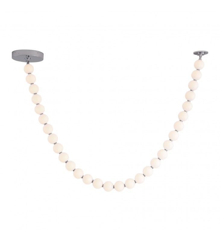 Inspired by the luxe pearls discovered by the sea, the Akoya collection is an instant classic. With unlimited amounts of configurations, this collection is perfect for any space in need of an awe-inspiring statement piece. Beads of illumination twirl in any way you prefer on a subtle frosted polished chrome frame. Now available in new sizes and canopy options.