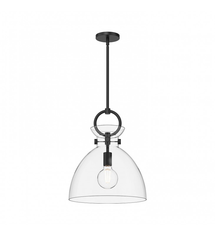 PD411814MBCL-Waldo 14-in Matte Black/Clear Glass 1 Light Pendant
