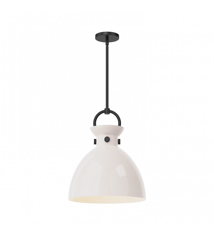 PD411814MBGO-Waldo 14-in Matte Black/Glossy Opal Glass 1 Light Pendant