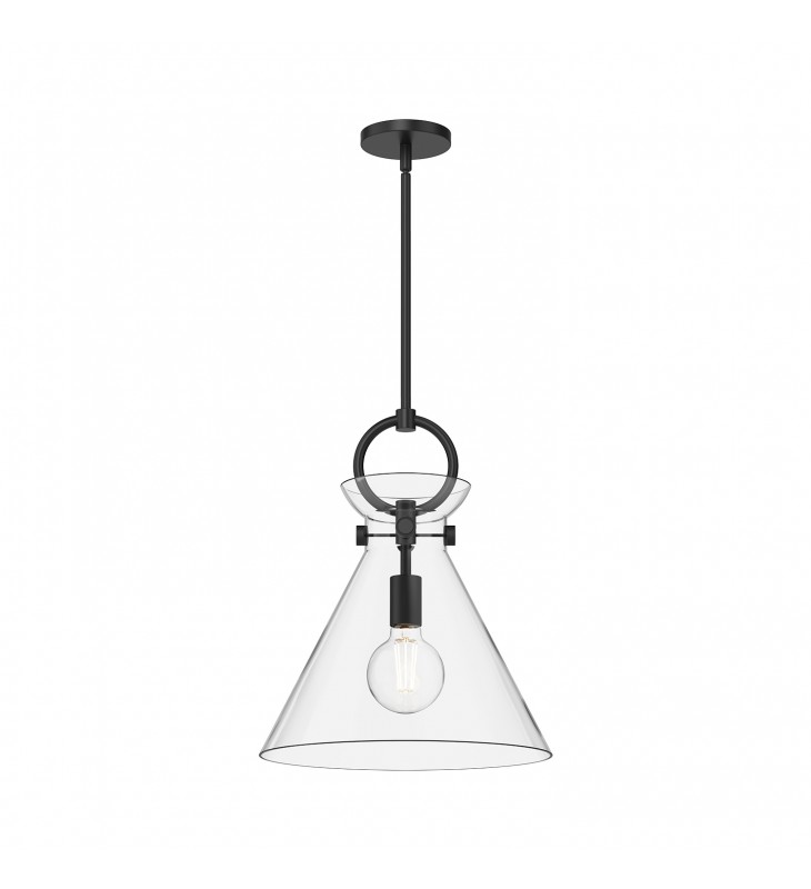 PD412514MBCL-Emerson 14-in Matte Black/Clear Glass 1 Light Pendant